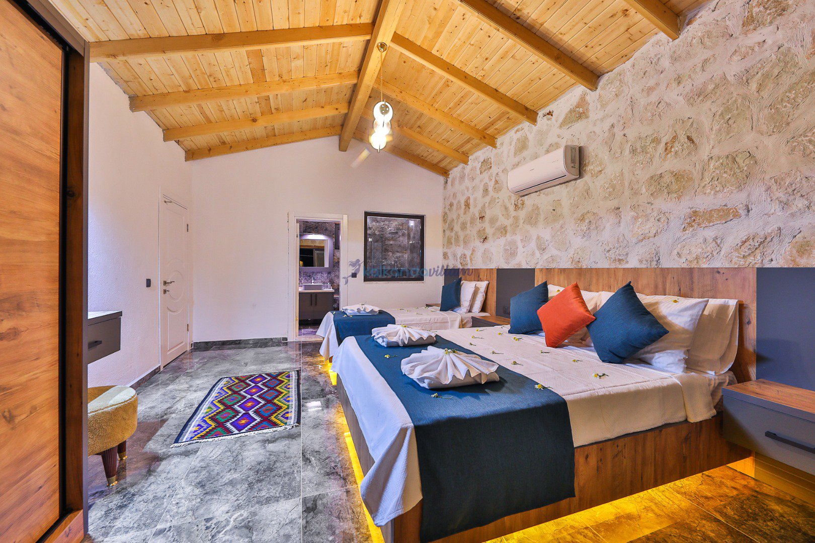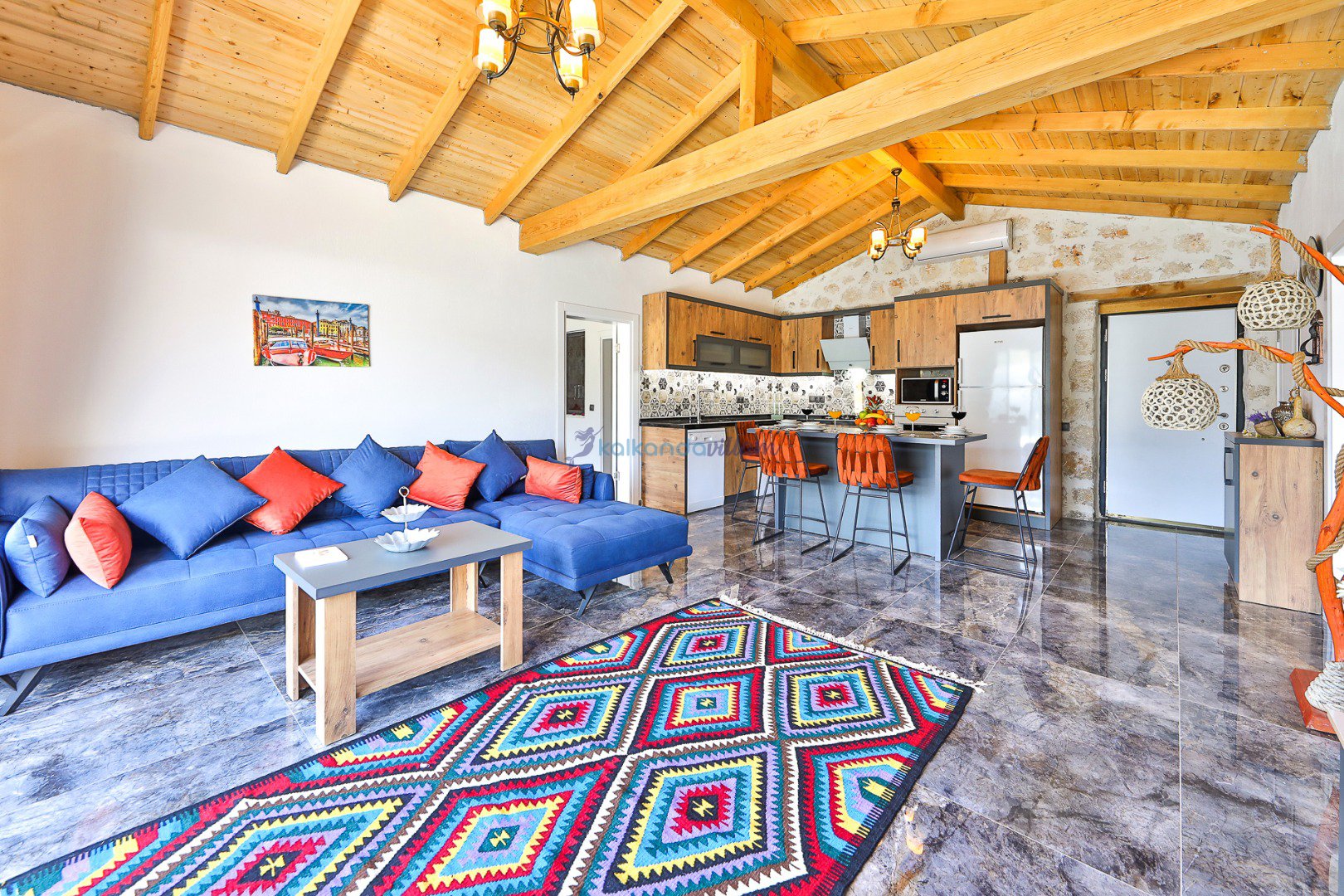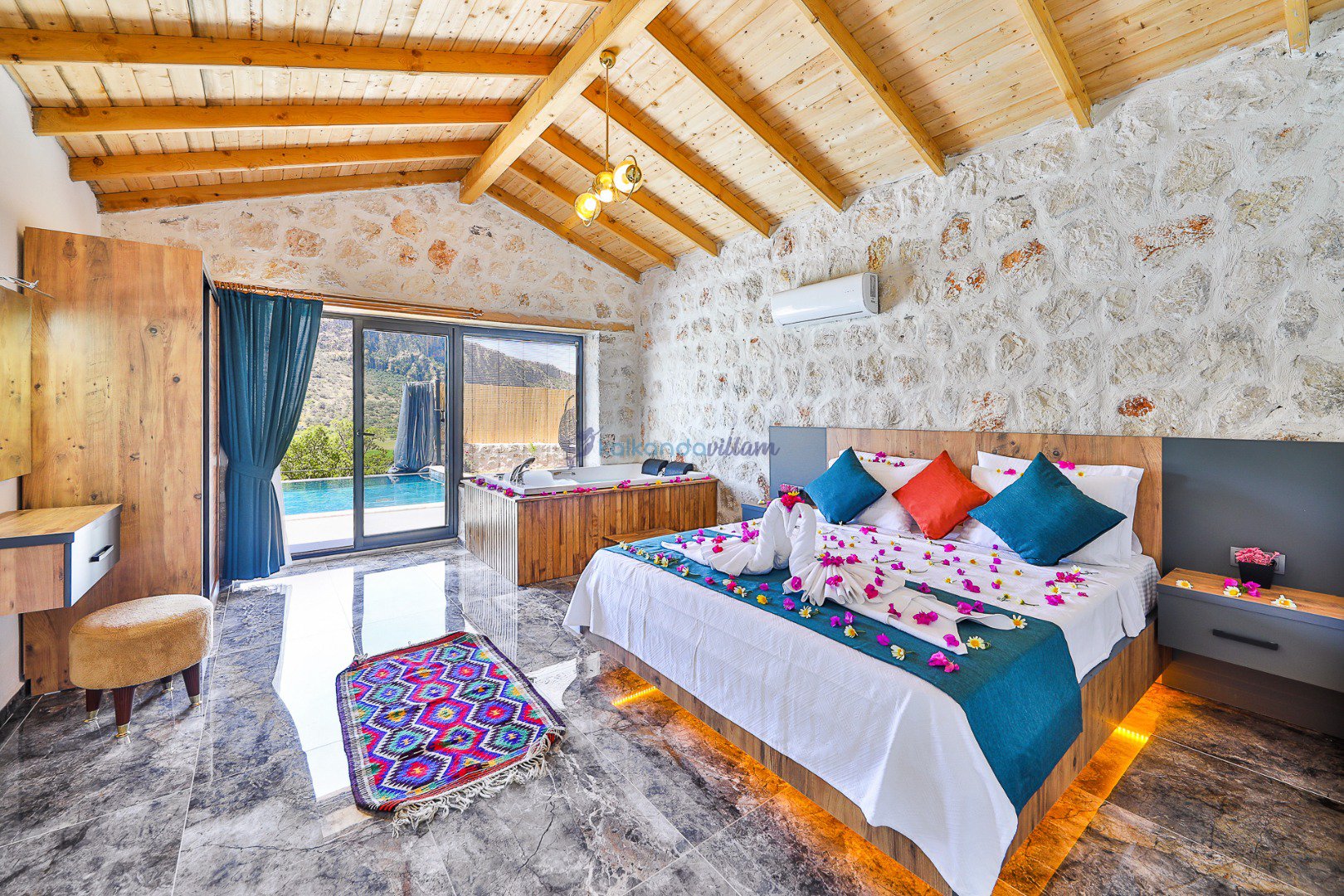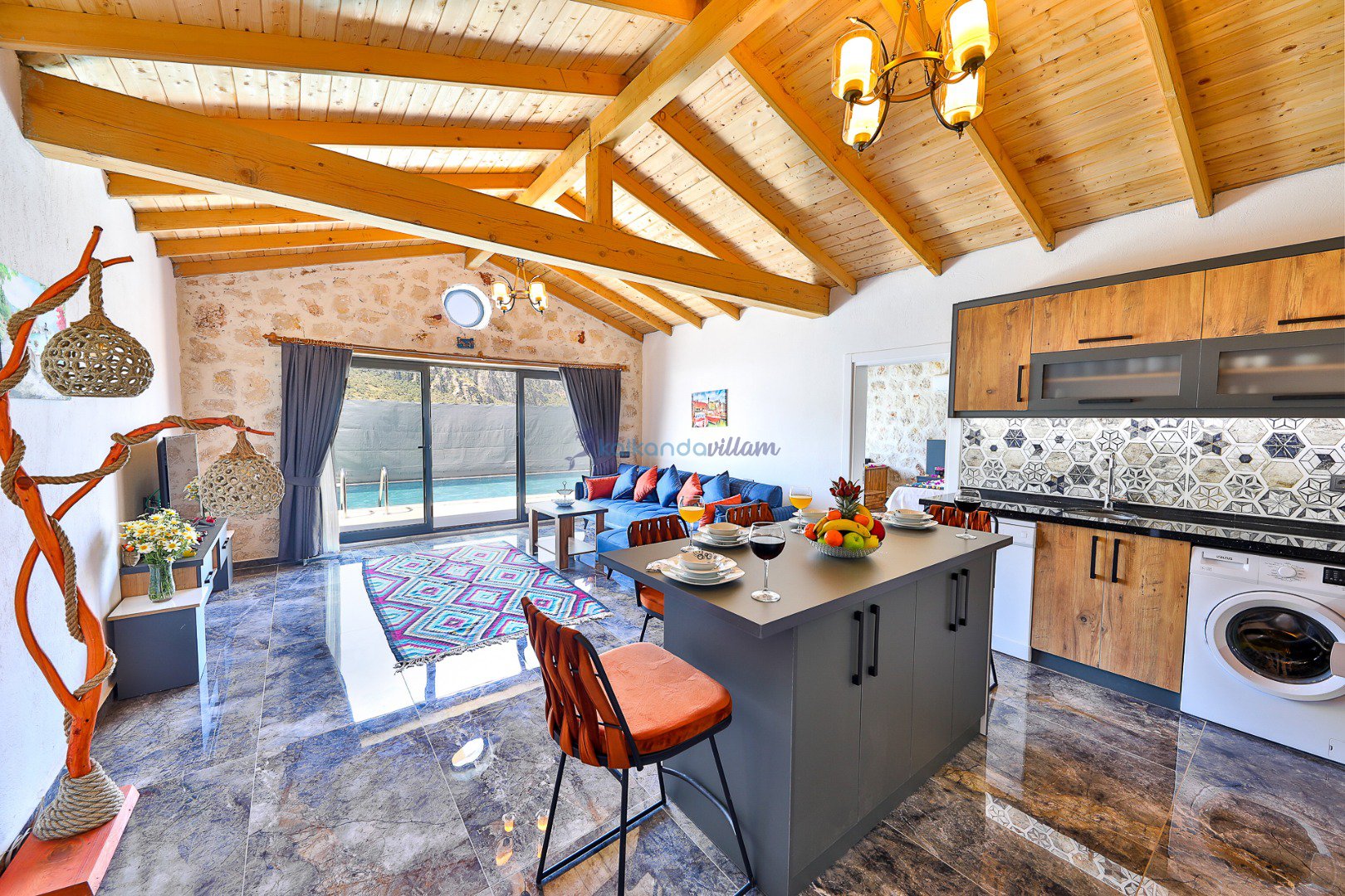 Muhteşem doğa manzarasının kalbinde yer alan villamız, 2+1 oda olup, geniş cam kapıları sayesinde misafirlerimize doğanın büyüsünü her an deneyimleme imkânı sunmaktadır.