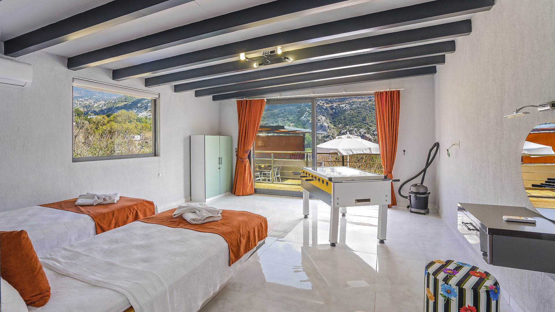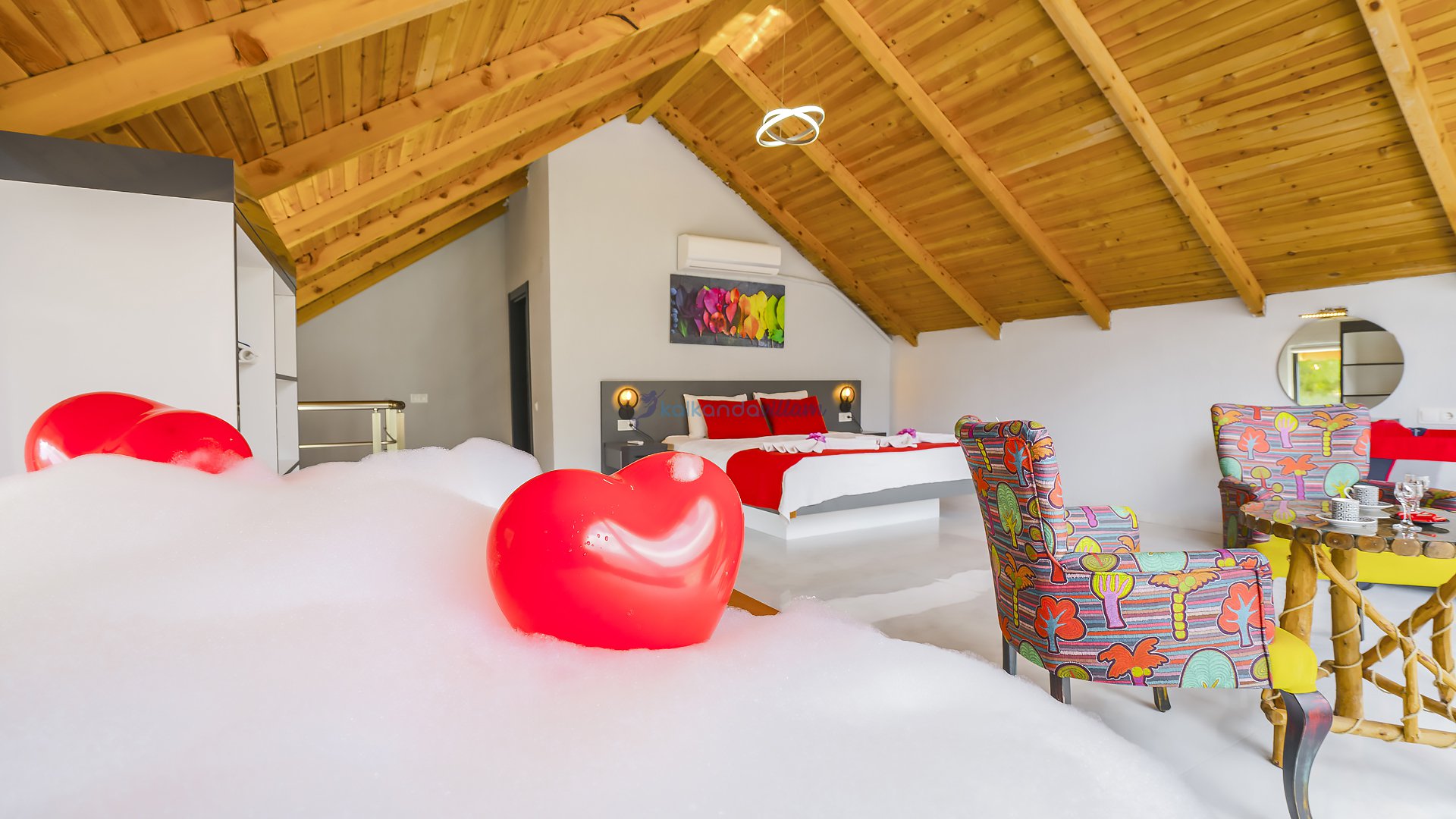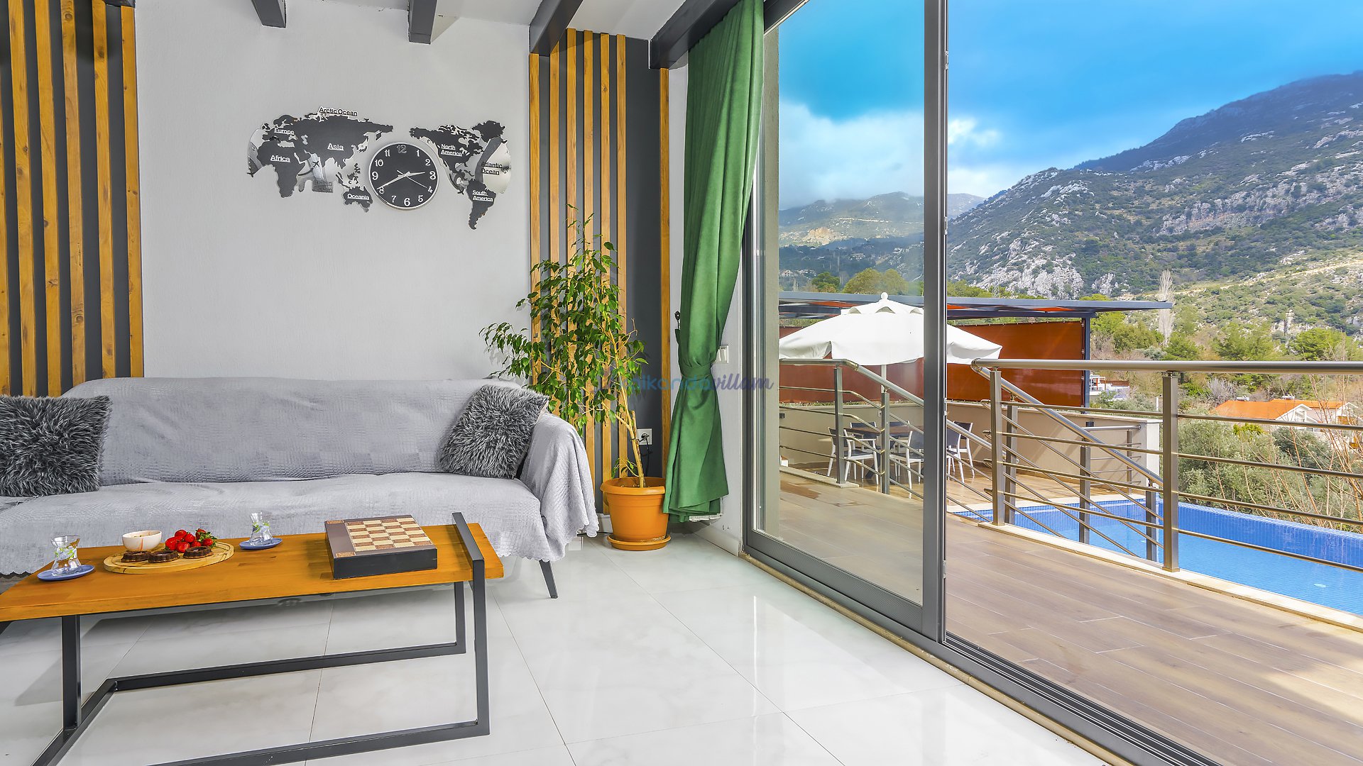 Muhteşem doğa manzarasının kalbinde yer alan villamız, 2+1 oda olup, geniş cam kapıları sayesinde misafirlerimize doğanın büyüsünü her an deneyimleme imkânı sunmaktadır.