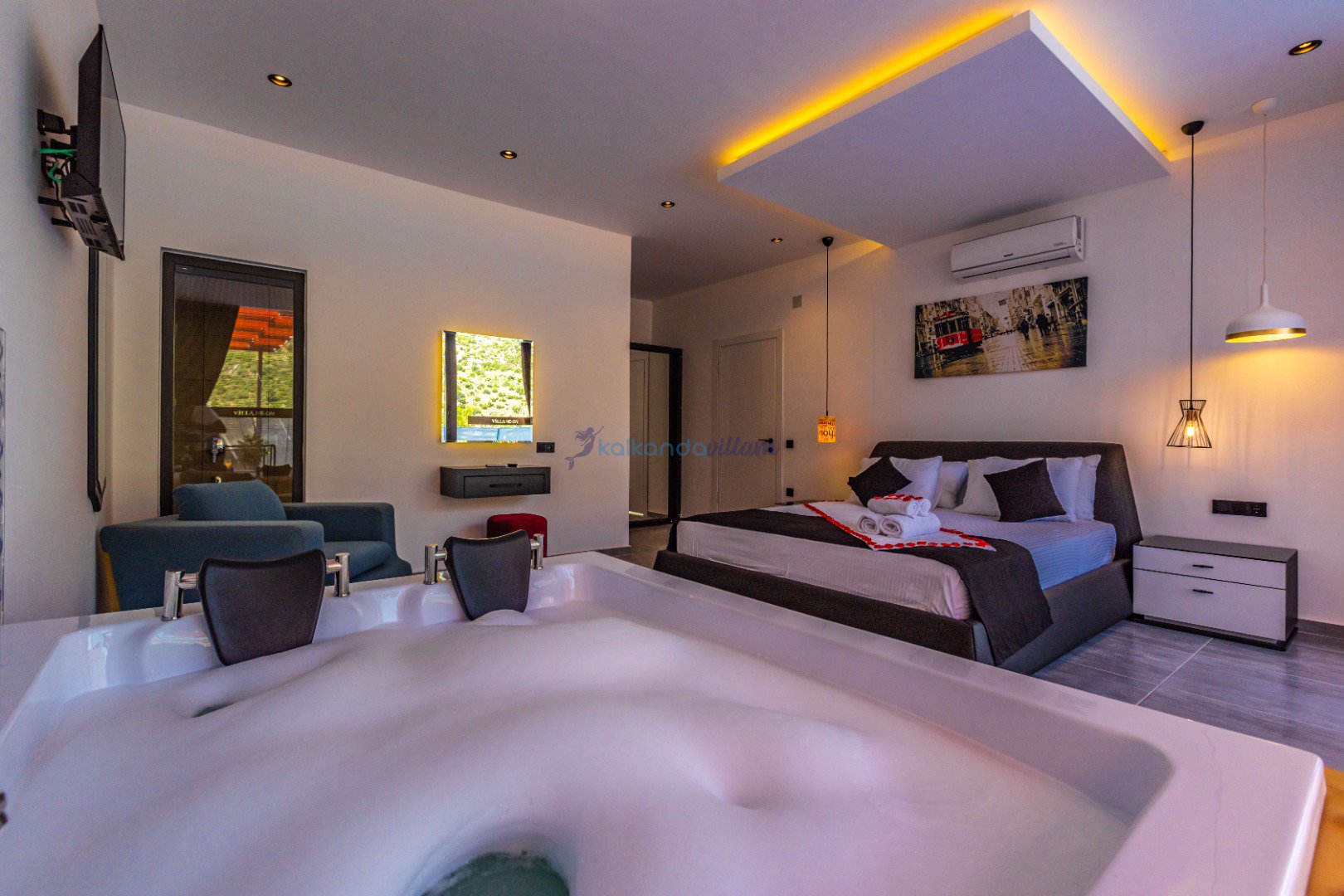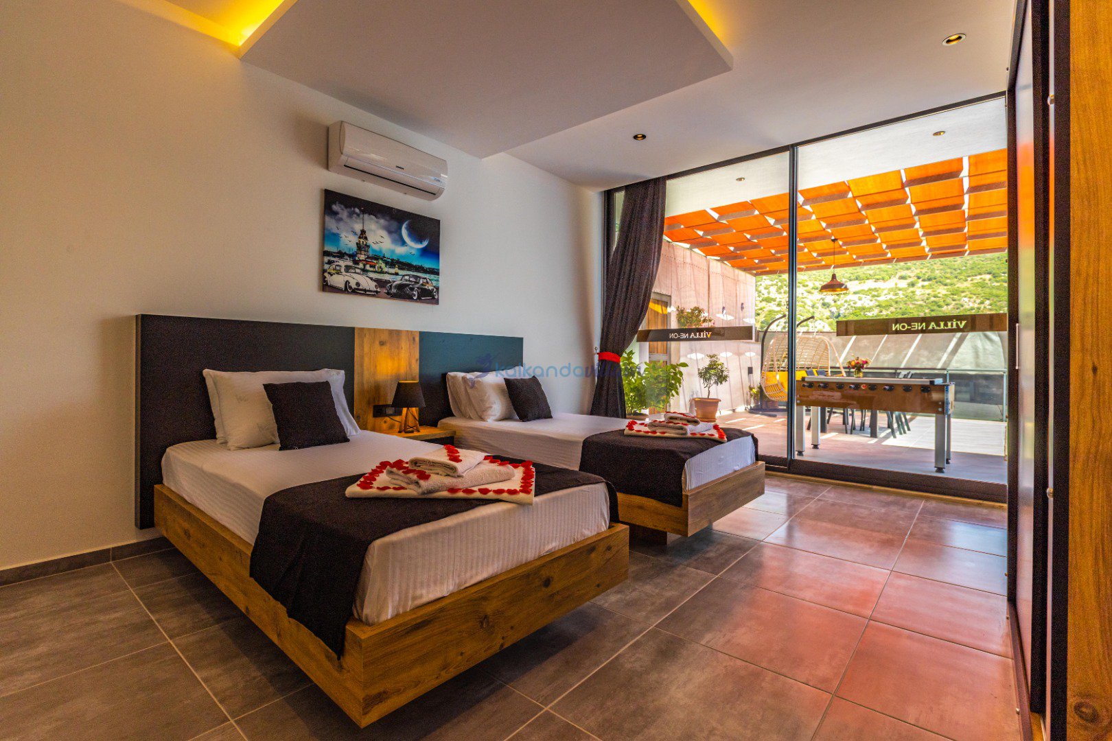 Doğa manzarasına sahip Villa Neon, romantizmi doruklarda yaşamak isteyen balayı çiftleri ve gözlerden uzak bir tatil deneyimi arayan misafirlerimiz için özenle tasarlanmıştır.
