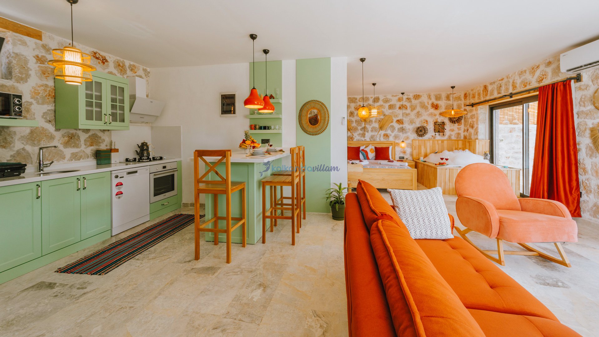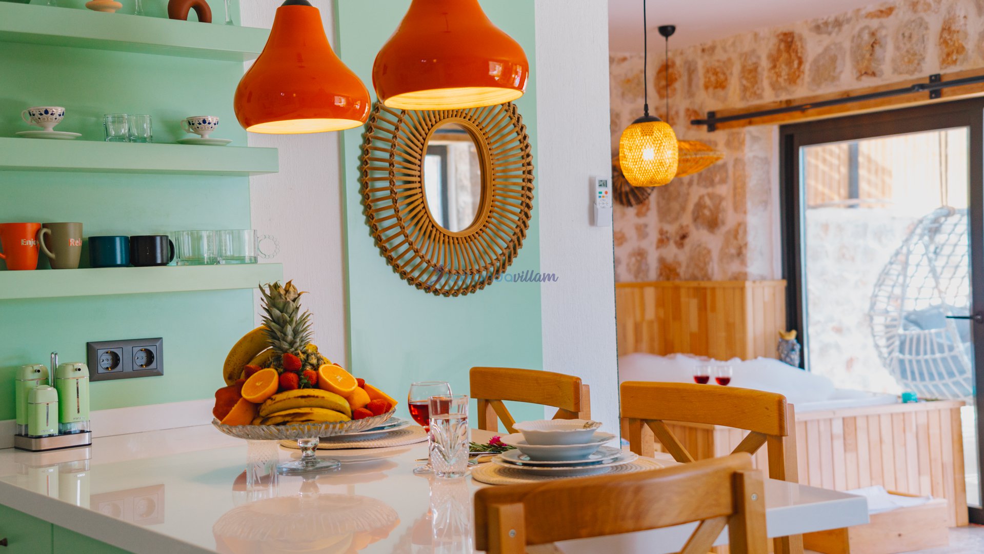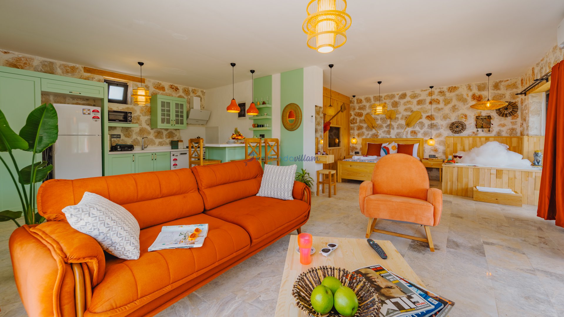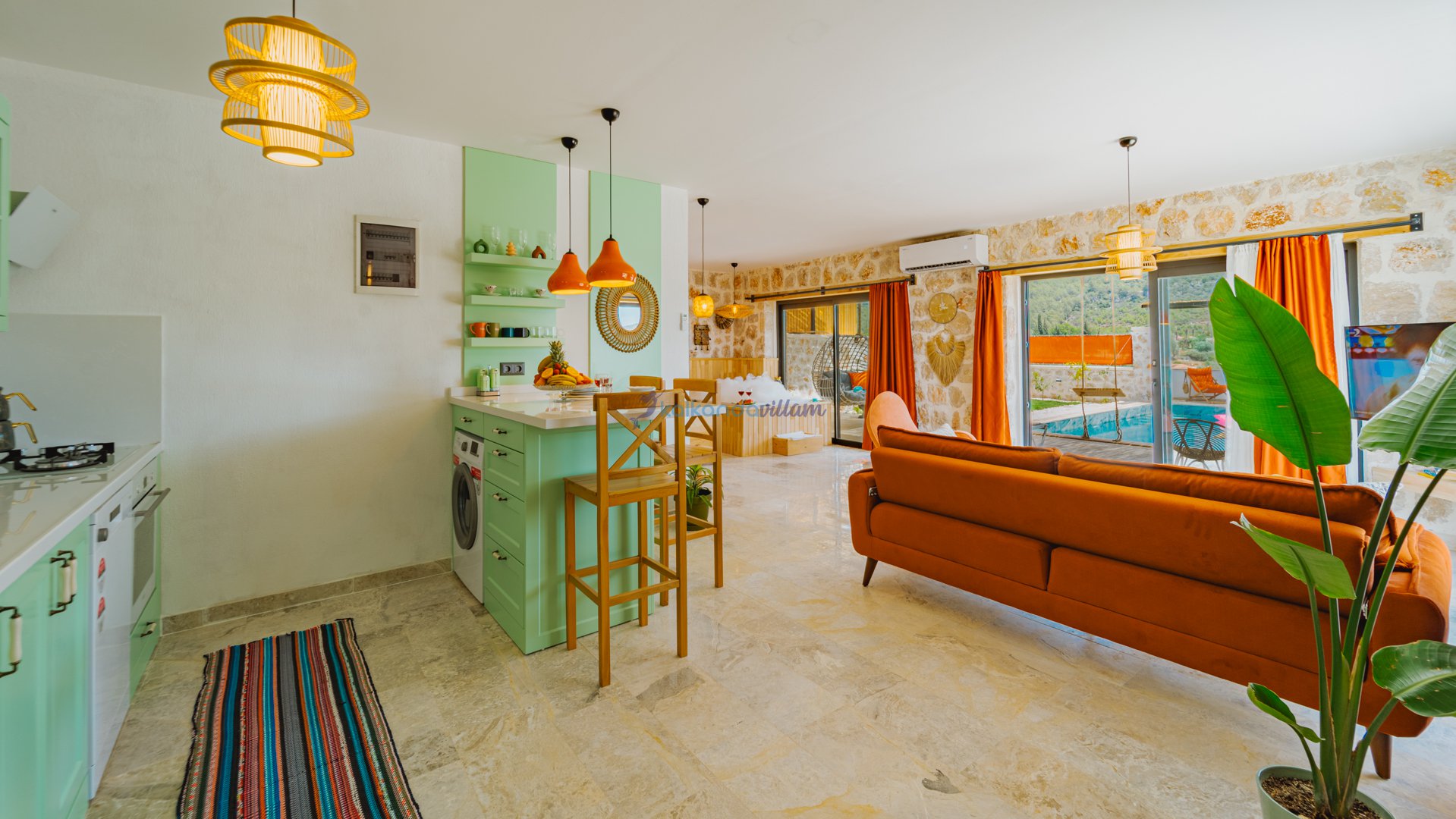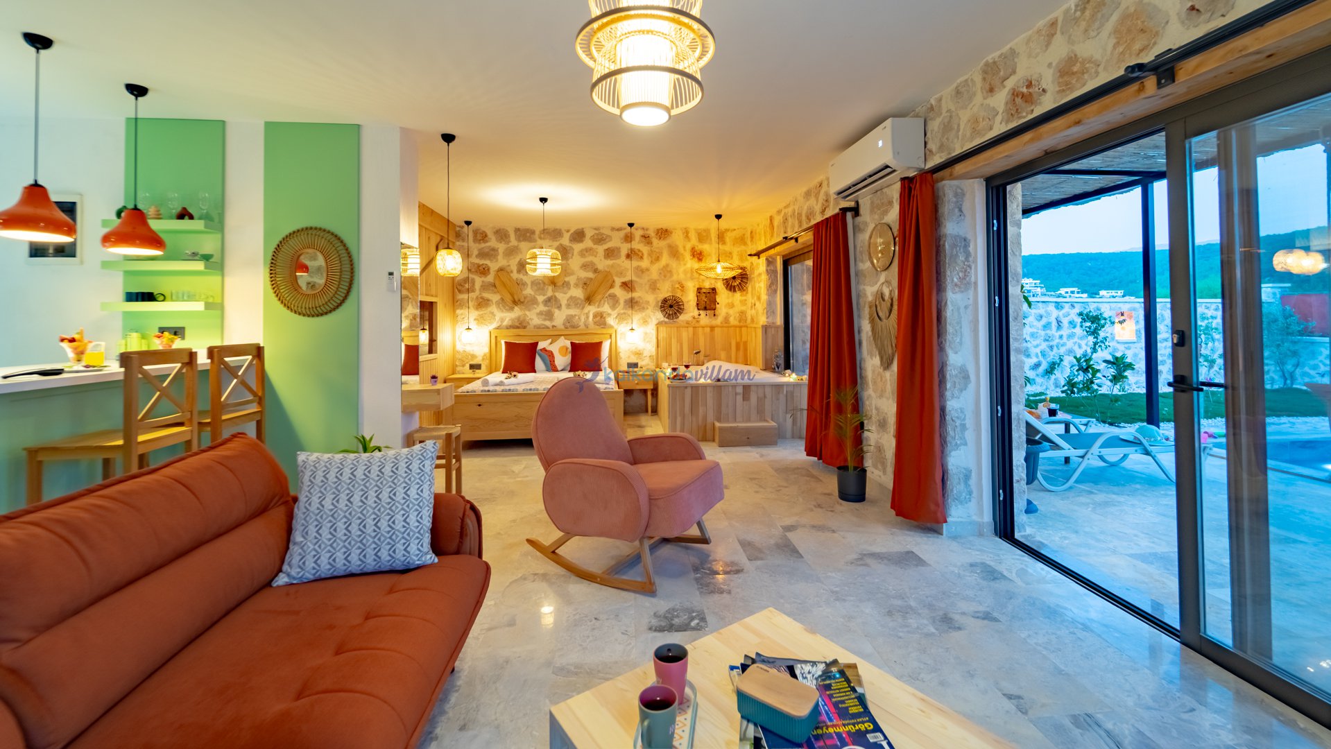 Muhteşem doğa ve deniz manzarasının kalbinde yer alan villamız, 1+1 oda olup, geniş cam kapıları sayesinde misafirlerimize doğanın büyüsünü her an deneyimleme imkânı sunmaktadır.